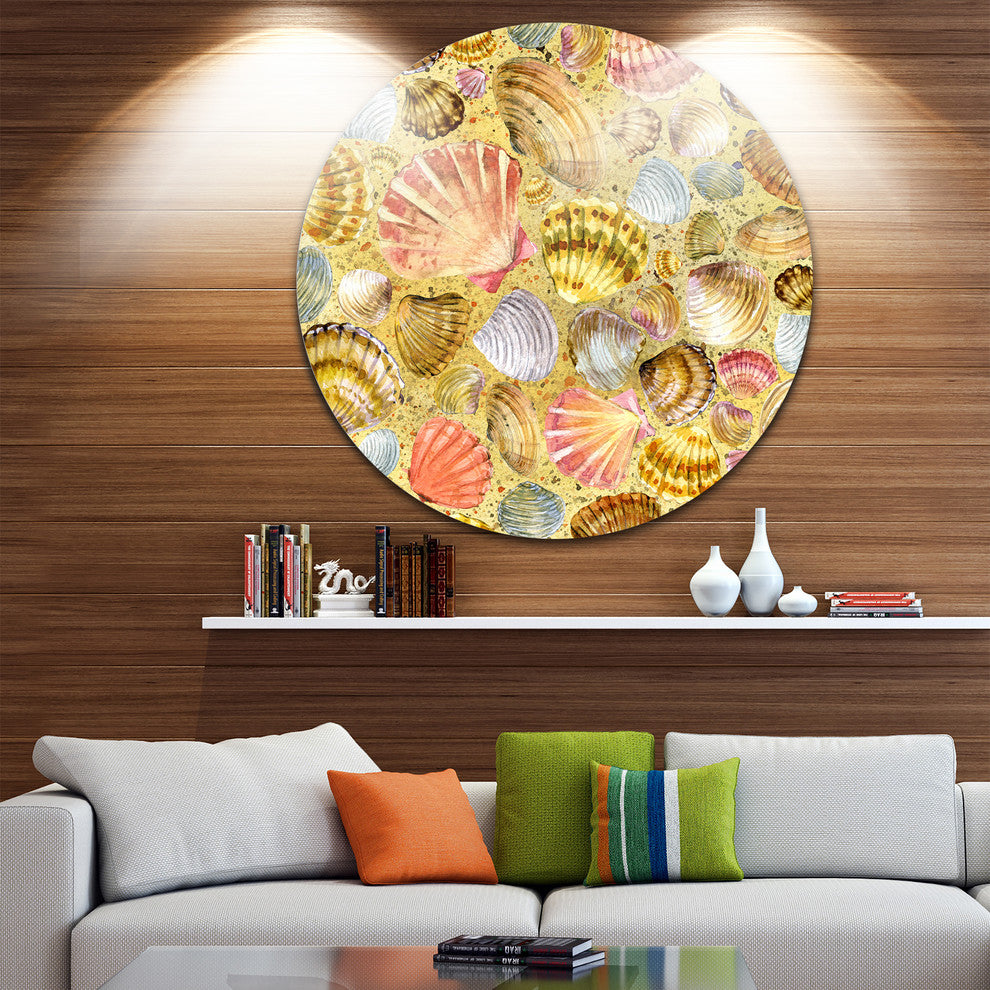 Seashell And Sea Sand, Sea And Shore Painting Disc Metal Artwork, 23"