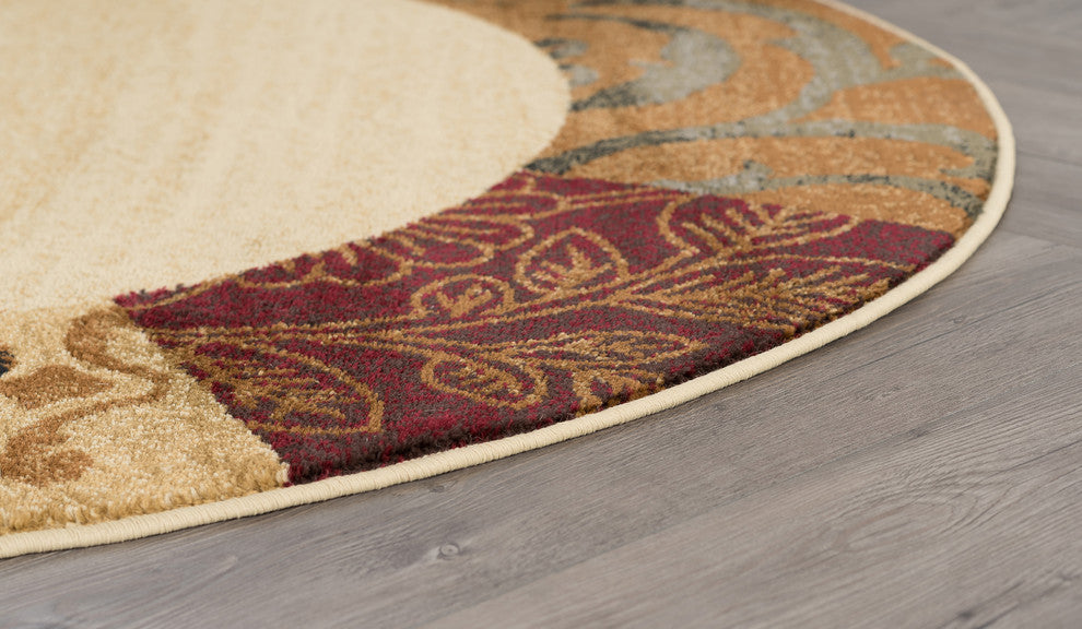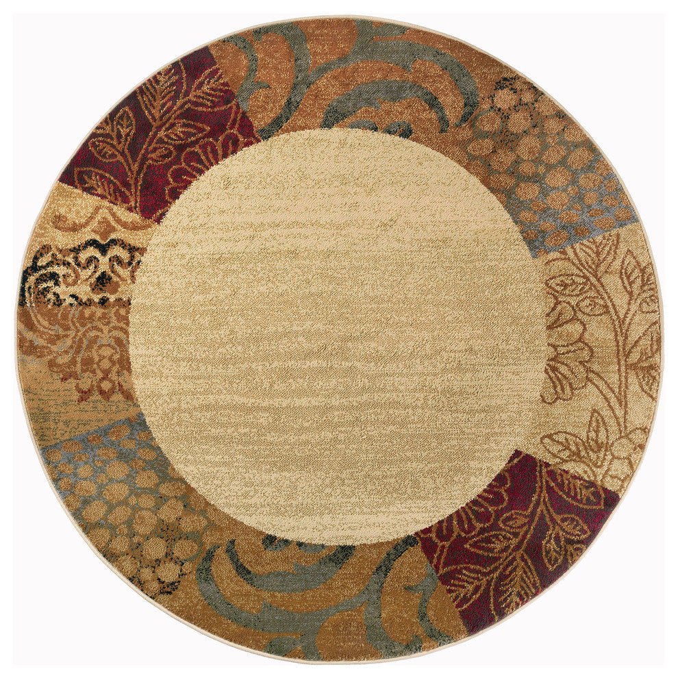 Sedona Transitional Floral Beige Round Area Rug, 5' Round