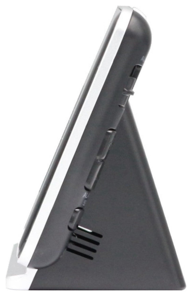 Wake up to style and the day"™s most pertinent information with the sleek, handy alarm clock. It has a black case with silver plastic frame and an easy-to-read digital display that features a calendar, thermometer, and dial light. There are dual beep alarms with automatic stop and snooze, no matter if you are hopping out of bed or just need a few more moments of shut-eye.