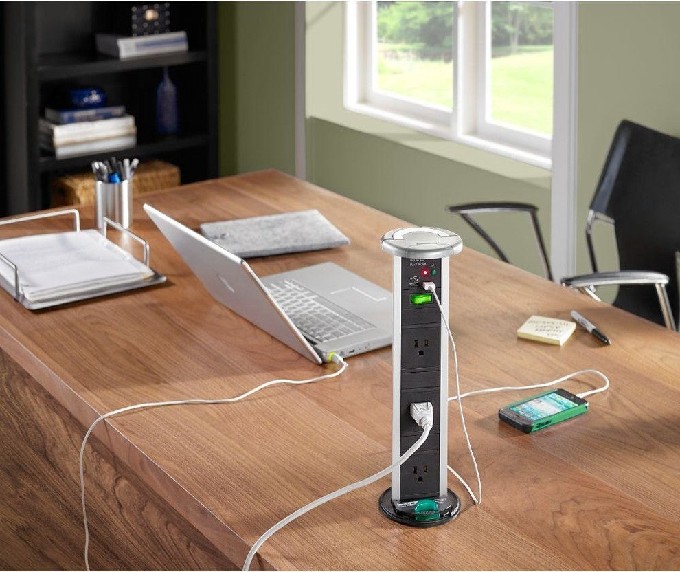 Sensio Pop Up Power Charging Station, 3-Socket 2-USB Outlets, Gun Metal