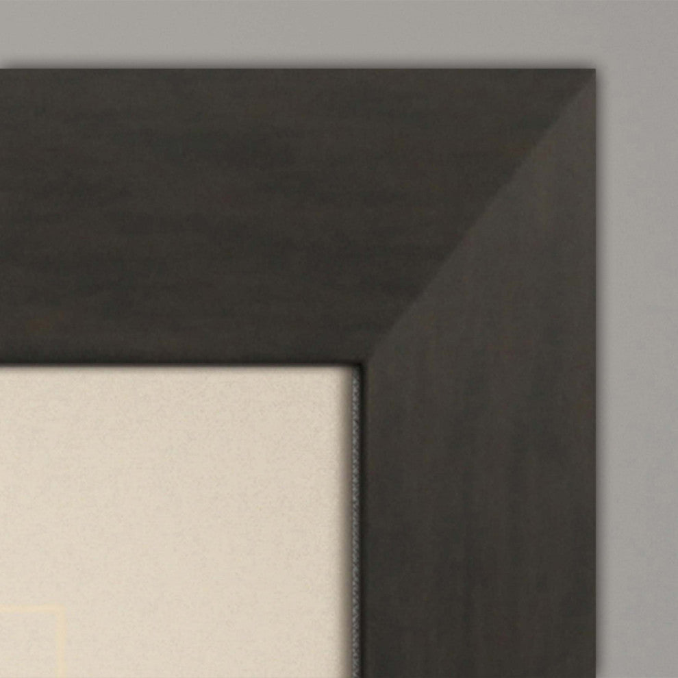 Blooms are matted in oyster and framed in a textured black finish moulding with silver edge.