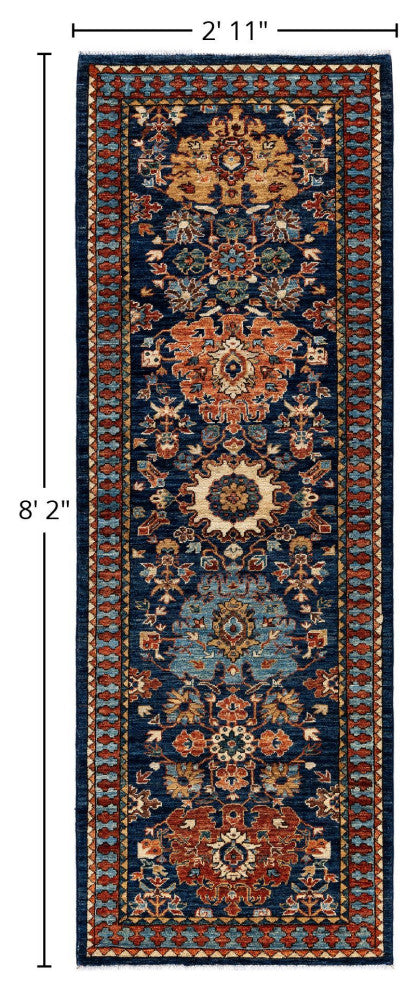 Serapi One-of-a-Kind Hand-Knotted Area Rug Blue, 2'11" x 8'2"