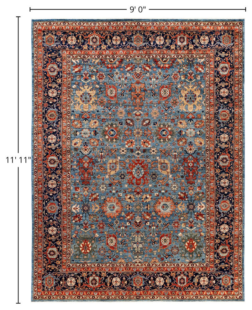 Inspired by the masterful artistry of Persian rug-making, our Serapi collection embodies artistry and sophistication. Immerse yourself in each rug''s intricate geometric motifs and exquisite botanical detailing. With up to 100 knots per inch, our Serapi rugs are handcrafted for exceptional durability and timeless allure.Features:Handcrafted by our team of experts in PakistanExceptional durability with 100 knots per inch constructionConstructed of 100% wool for a soft and cozy feelConvenient 9''0" x 11''11" dimensions offer the perfect balanced and inviting rug presenceNote that slight color variations may occur due to monitor differences. Embrace the individuality of each rug with minor variations in lengths, widths, and patternsDimensions:Area RugAssembled Product: 108 inches wide x 143 inches deep x 0.35 inches highLength: 143 inchesWe believe that a beautiful room starts from the ground up. That is what inspired our founders to start selling hand-knotted rugs over 40 years ago. Since then, our passion for well-designed, impeccably hand-made rugs has never wavered.Experience - With more than 40 years in the rug business, our knowledge of premium hand-knotted rugs is exceptional.Quality - Our focus is on hand-knotted rugs and only hand-knotted rugs. At a minimum, it takes months to complete each rug by hand -� that level of workmanship means our rugs are made to last.Variety - Our selection includes styles, sizes, and colors for every space and taste.