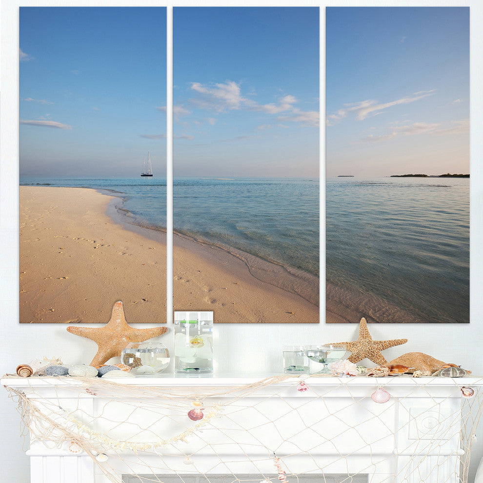 "Serene Maldives Beach With Plain Sky" Metal Wall Art, 3 Panels, 36"x28"
