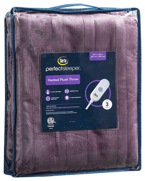 Serta Plush Heated Throw, Purple