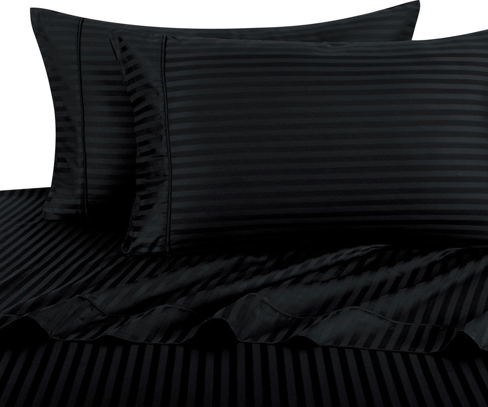 Set of 2 600 TC 100% Cotton Stripe Pillowcases, Black, King