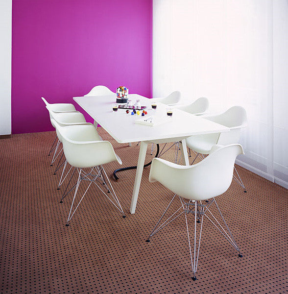Featuring a seat shell can be joined with a variety of different bases, the DAR Molded Plastic Dining Armchair with Steel Eiffel Legs is the perfect addition for the dining area or home office. Can be used with seat and back cushions for added comfort. Available in multiple colors.Product Features:• Sold as a set of 2 chairs• Contoured seats sculpted to fit the body, formed in a single mould with plastic• The legs are made from solid steel to contrast the plastic seat for a minimalist look• Made of heavy-duty polypropylene with matte finish• Non-marking plastic floor protectors prevent damage to flooring• Mainly for indoor use• Overall Product Dimensions: 24.5" W x 23.5" D x 32" H• Seat Height: 16.25"H• 1 year warranty• Some assembly requiredDimensions:24.5" W x 23.5" D x 32" H