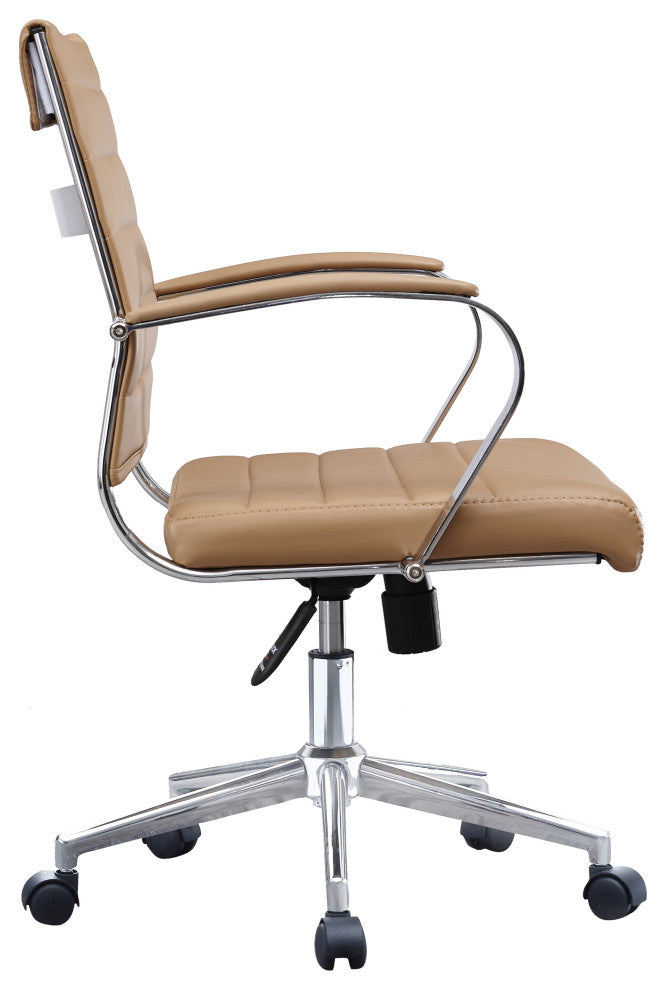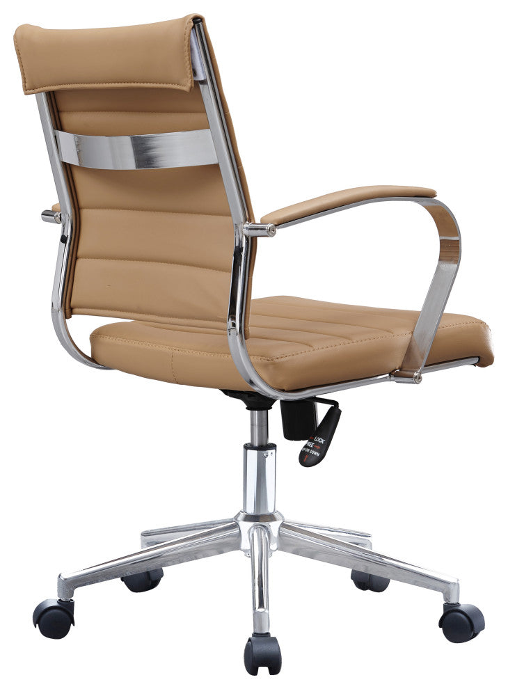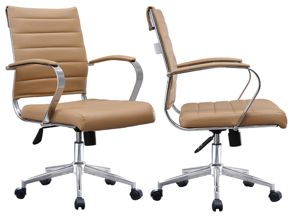 Set of 2 Mid Back Swivel Ribbed PU Leather Office Arm Chair Modern Ergonomic, Beige Tan