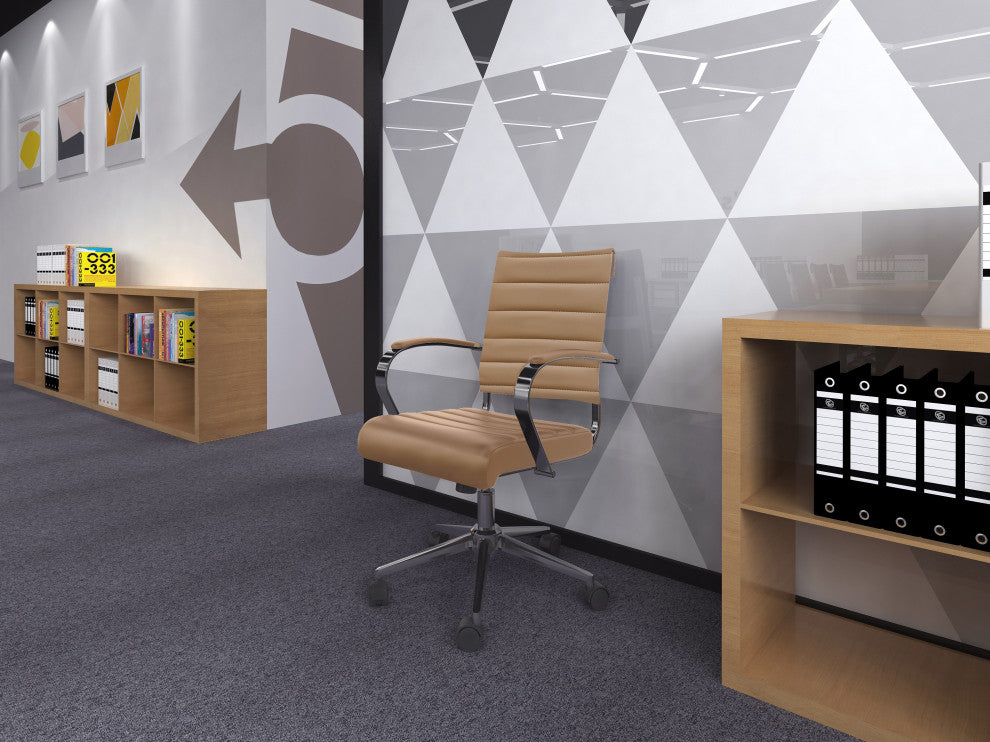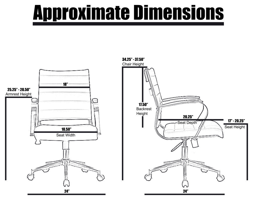 • Mid back, swivel chair, ergonomic, has arms, lumbar support, wheels, adjustable height, tilt control.