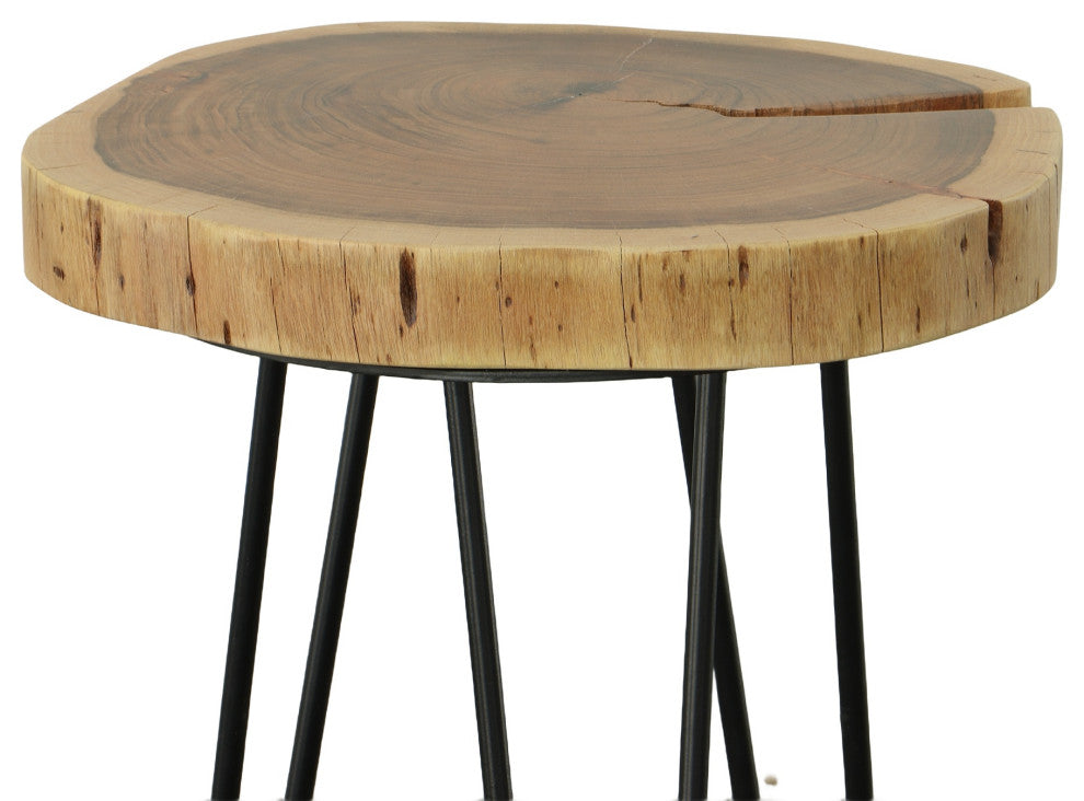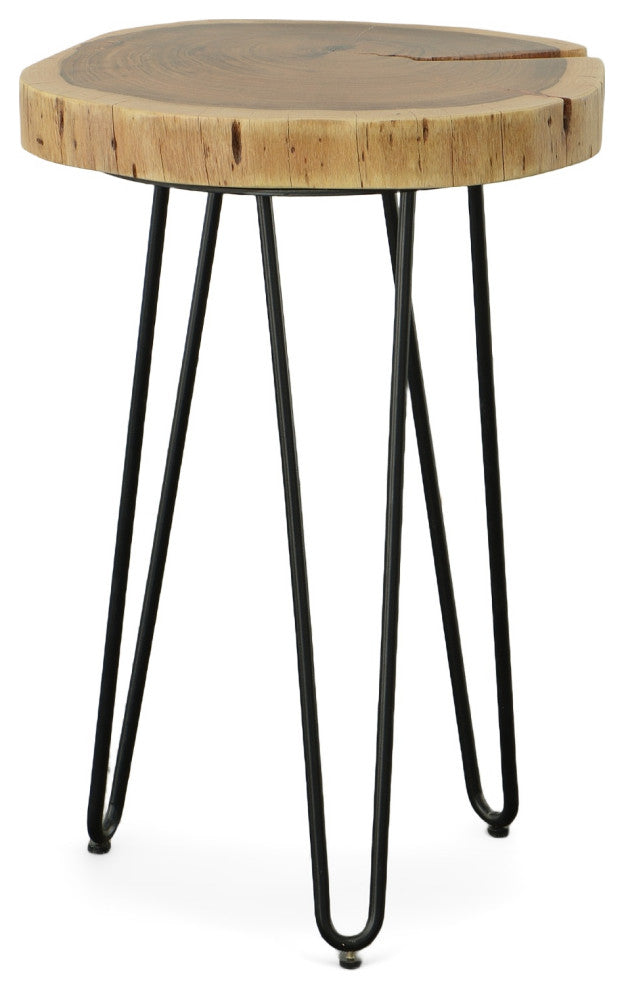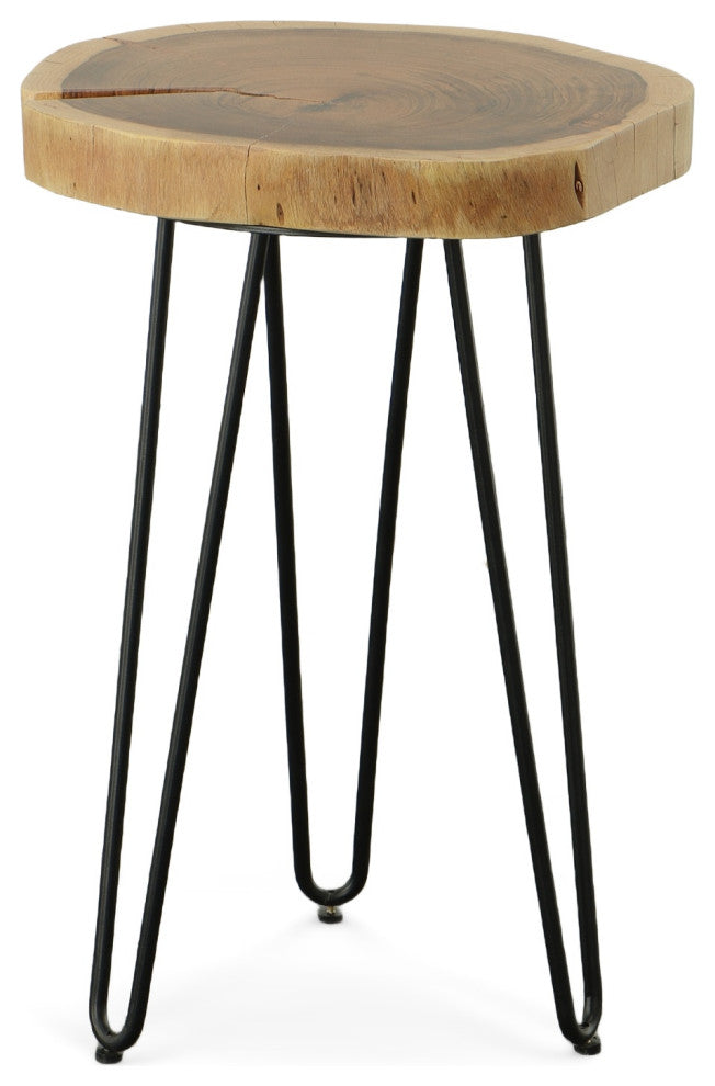 Mid-century meets modern industrial with our Seti natural live edge accent table. Each tabletop is unique and no two tops will be exactly alike. Constructed of natural mango wood, the knots and cracks add to the wood''s character. A clear natural finish enhances the beautiful features of each piece of wood.