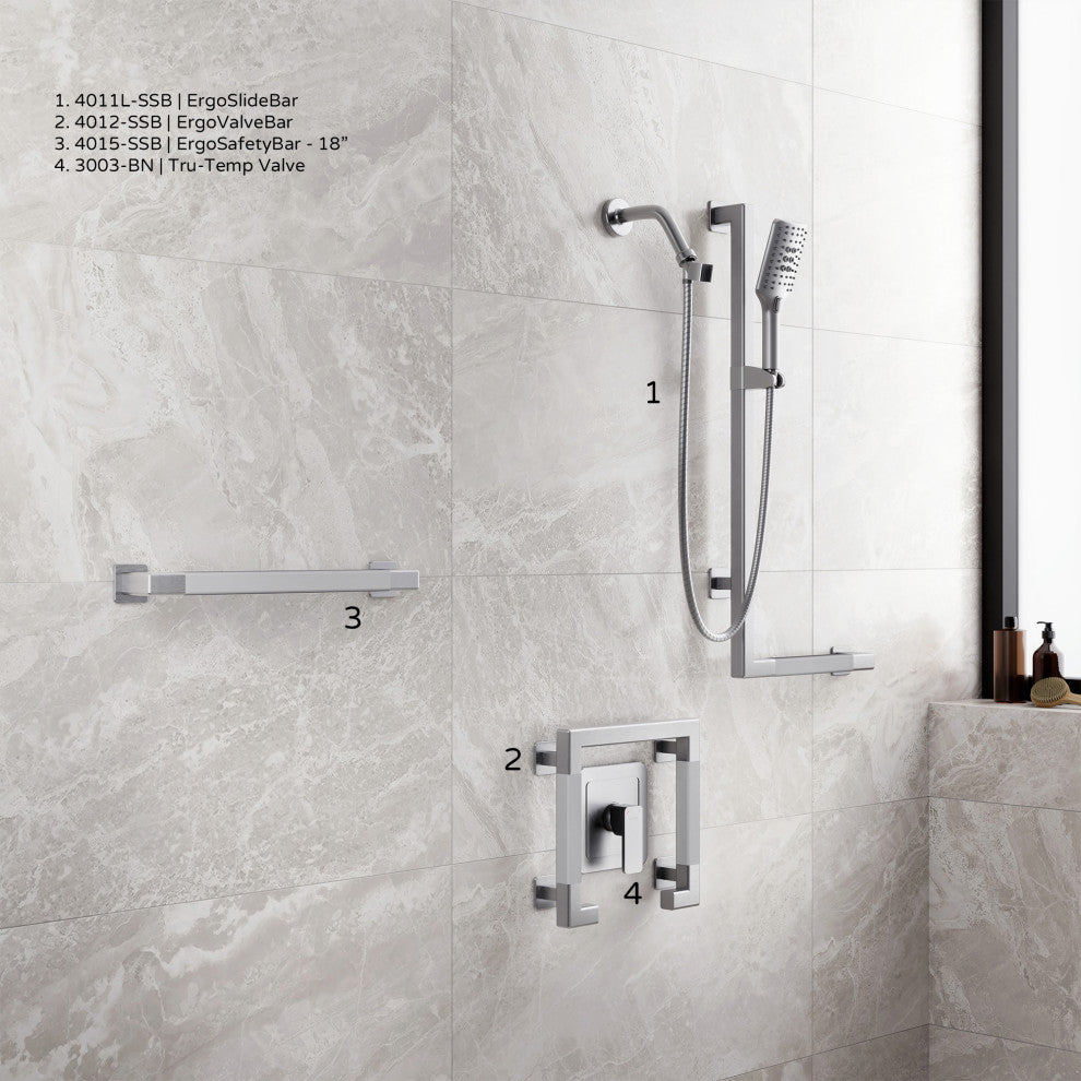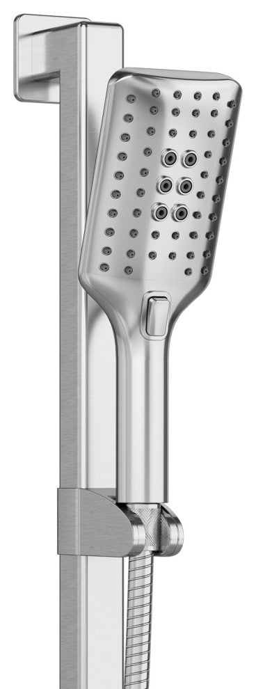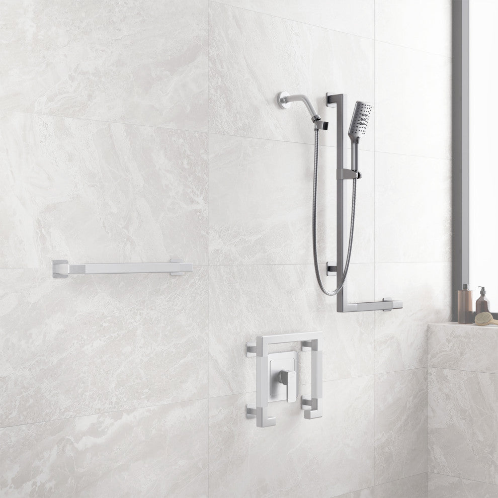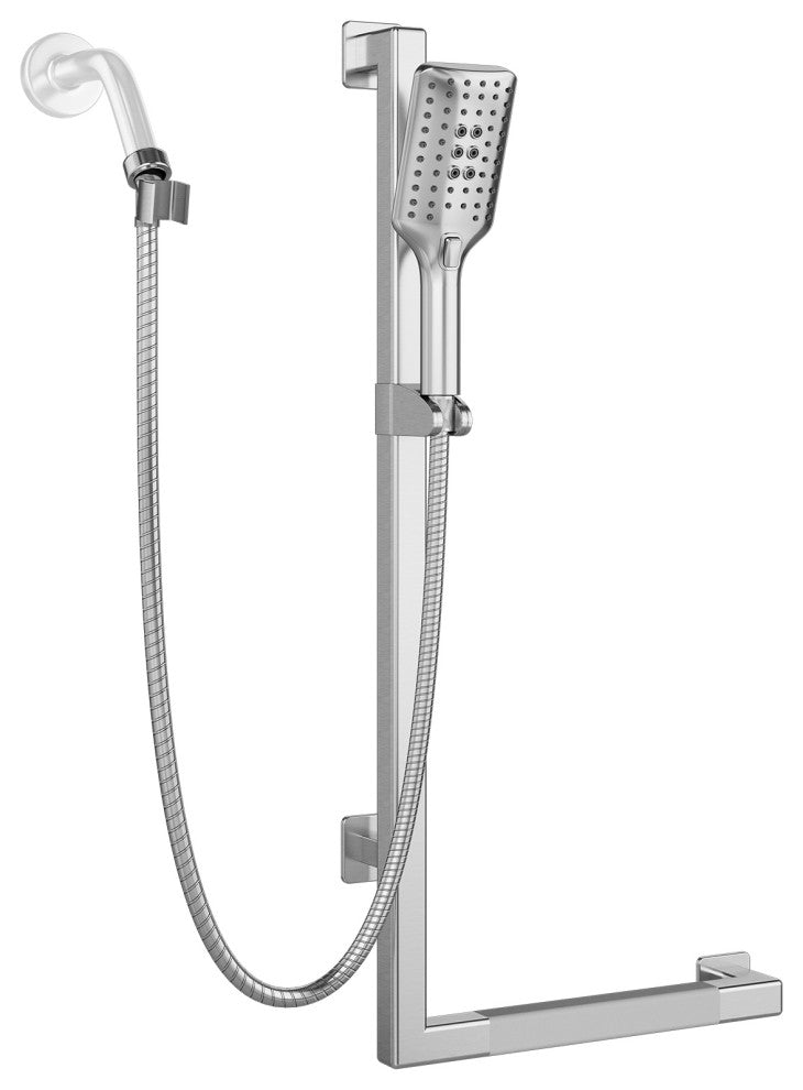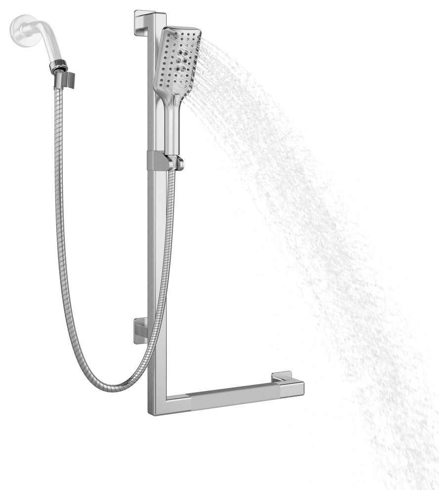 Introducing the Seville Collection by PULSE ShowerSpas. Recognized by top designers, the Seville Collection brings a fresh take on bathroom safety. The PULSE ShowerSpas Seville SlideBar - a versatile and robust addition to any shower environment. The L-shaped grab bar stands out with its ergonomic soft grip, providing users a comfortable and secure hold. Its adjustable height and multi-function handshower offer a personalized bathing experience, allowing users to effortlessly tailor water flow to their preference. With a weight capacity of 500 pounds, it provides exceptional support, enhancing safety and confidence during use. Engineered with an industrial-grade build, this concealed screw grab bar is an ideal choice for both residential and commercial settings. Experience the timeless elegance of the Seville Collection, where style meets safety with the trusted assurance of PULSE.