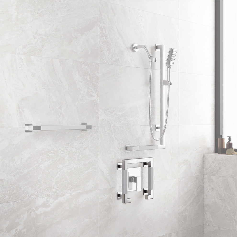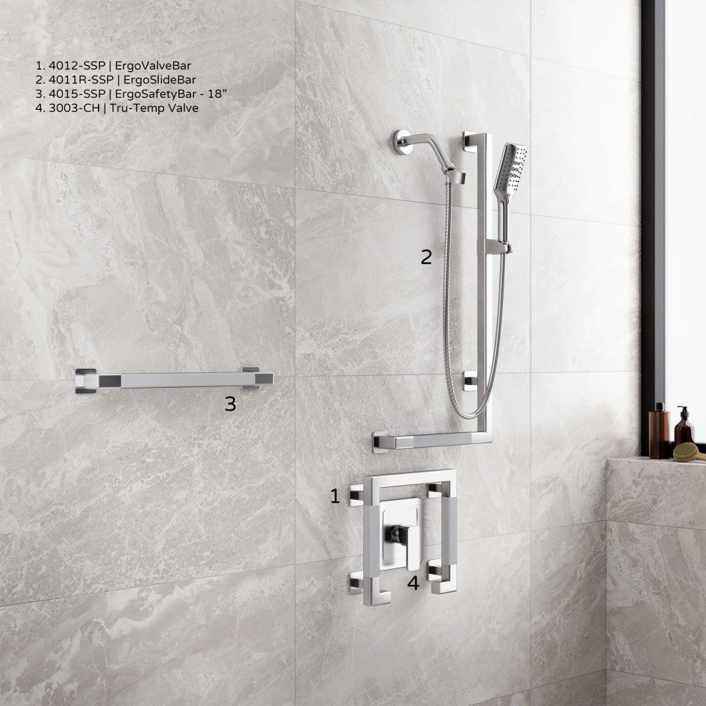 Introducing the Seville Collection by PULSE ShowerSpas. Recognized by top designers, the Seville Collection brings a fresh take on bathroom safety. The PULSE ShowerSpas Seville Valve Bar is designed to complement your shower while providing extra support and comfort. The ADA Compliant Seville Valve Bar sits conveniently around any standard shower mixing valve. The innovative ergonomic soft grip has been crafted to provide a comfortable and secure hold, while seamlessly integrating into the aesthetic of your shower space. Engineered with an industrial-grade build, this concealed screw grab bar is an ideal choice for both residential and commercial settings. Experience the timeless elegance of the Seville Collection, where style meets safety with the trusted assurance of PULSE.