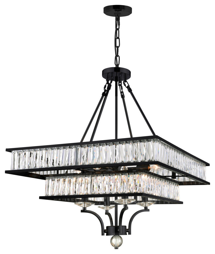 Definitely not your ordinary square lamp. The Shalia 8 Light Chandelier in Black has depth and character uniquely its own. With defined corners, clean lines, and delicate crystals, this light source will fill your space with inviting light and captivating style. Equip this chandelier with dimmable bulbs and be able to control the brightness and set the right ambiance in any room. Feel confident with your purchase and rest assured. This fixture comes with a one year warranty against manufacturers defects to give you peace of mind that your product will be in perfect condition.