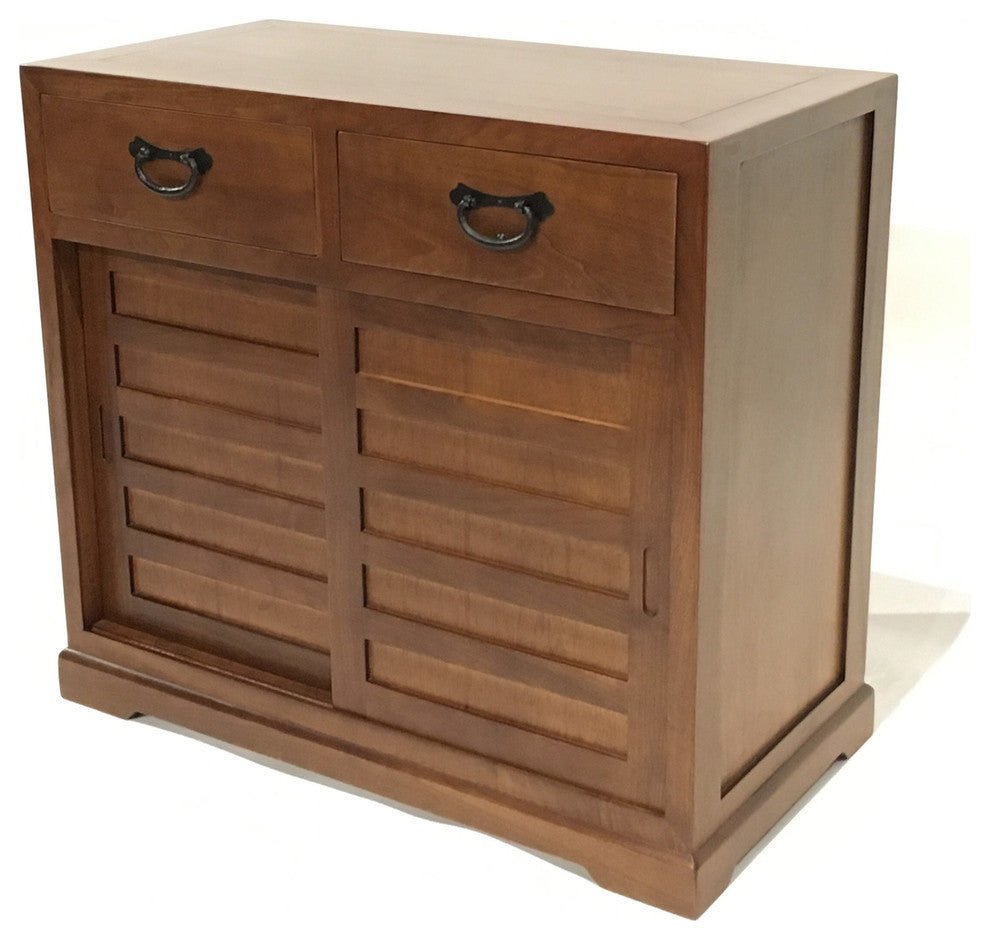 Compact cabinet or side table the Shinto Cabinet offers great storage. Iconic Tansu style features right angles and straight lines making the Shinto Series a great accent to contemporary decor. Perfect next to the sofa in the living room or as a night stand alternative. Single shelf behind sliding doors. Also see the Shinto Tall Cabinet option.W 27.5" D 14.5" H 25.5"