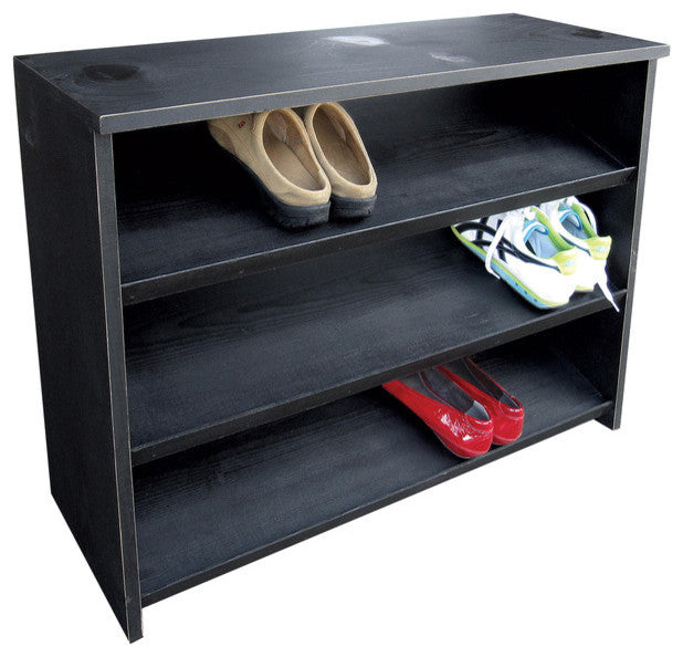 There is nothing as charming, functional, and full of personality as handmade wooden furniture. Infusing the space with a touch of nature yet versatile enough for any style of decor, wood can transform the look and purpose of your living space. Made of solid knotty pine wood, the Shoe Rack in black is a simple and gorgeous way to keep your space free of the clutter of strewn shoes. Three shelves offer ample space for the whole family''s shoes, and a top shelf provides a space for decorative accents, such as a vase of flowers or a few photos.