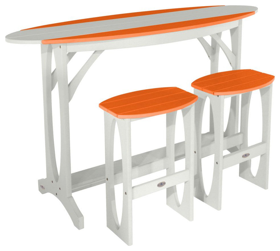Shoreline 3-Piece Bar Height Balcony Set, White and Citrus Orange