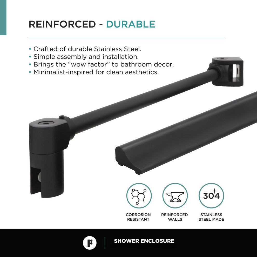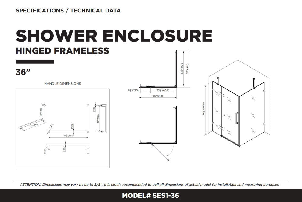 Shower Enclosure Hinged Frameless Tempered Glass, Black, 36"