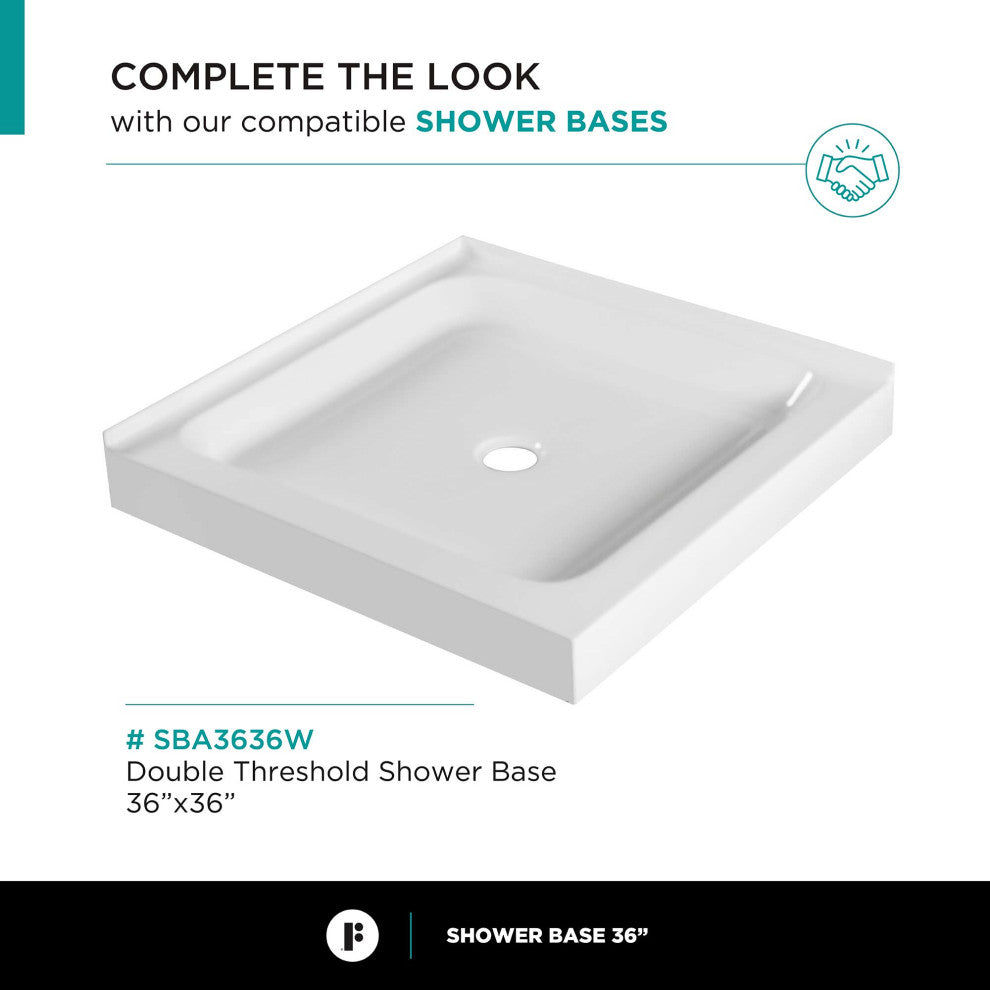 Our hinged glass shower enclosure comes in three convenient sizes, 32x32 - 36x36 - 42x42