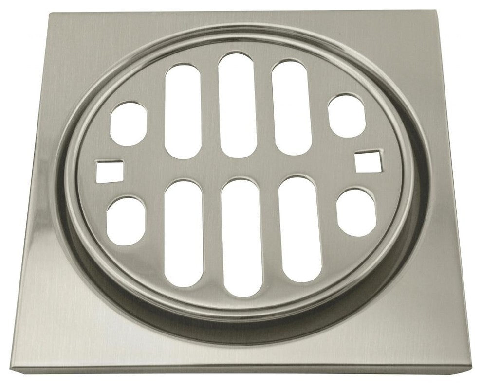 Shower Strainer Trim - 4.5" Od Square, Crown, And Grill In Satin Nickel