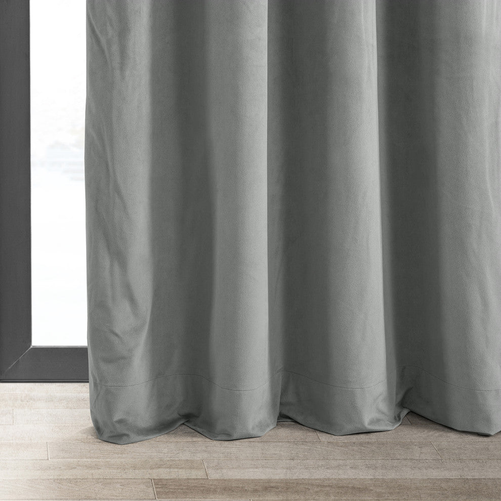 Signature Silver Gray Grommet Blackout Velvet Curtain Single Panel, 50"x84"