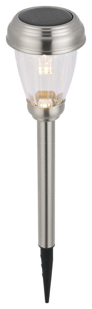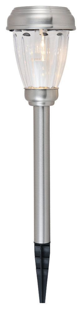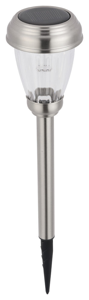 Create an illuminating path of lights in your front yard or garden. ETL wet-listed and solar energy-powered, these energy-saving LED outdoor path lights will stay bright for years with a rated life of 50000 hours. The 0.16-watt LED generate 3 lumens gives off a comforting 3000K warm white color temperature. Sun, rain, or wind, these lights will continue guiding you with its beautiful aesthetics: the durable stainless steel housing has a stake at the base to prevent wind toppling it over, and the clear ribbed plastic protects the light. Sold in a pack, your outdoor area will be bathed in radiant wonder.