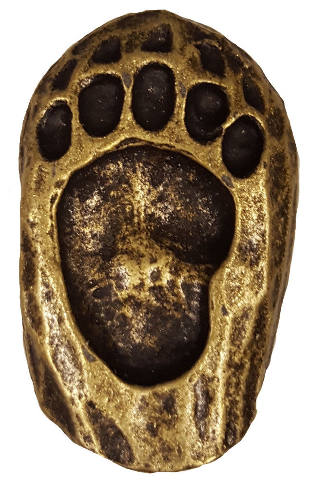 Single Bear Track Right Facing Cabinet Knob, Antique Brass