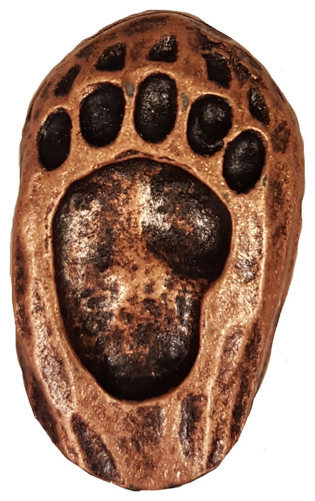 Single Bear Track Right Facing Cabinet Knob, Antique Copper