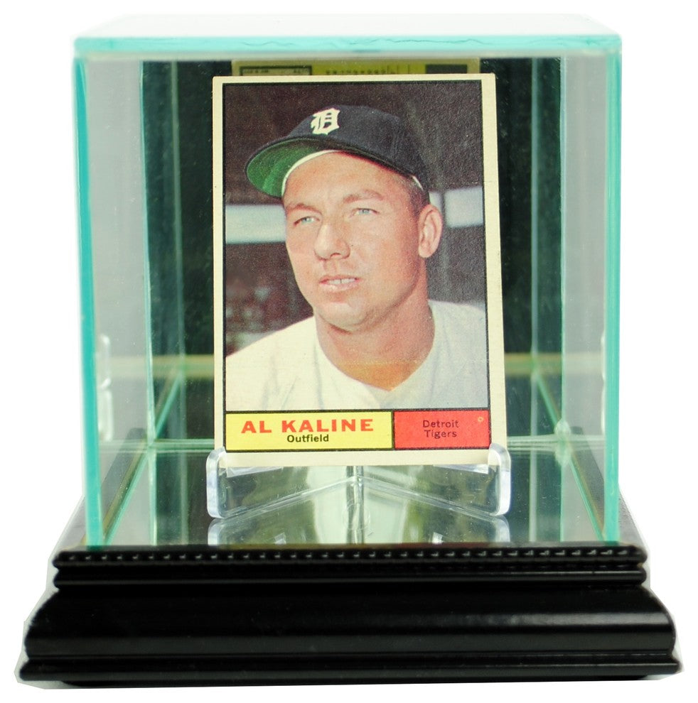 Protect your card with our real glass Single Card Display Case. This display case is made with mirror on the bottom and back to give a full view of your card. This case is UV protected and is supported by real wood moulding. Our adhesives contain no acids that may deteriorate signatures. This case also comes with a clear acrylic card holder.