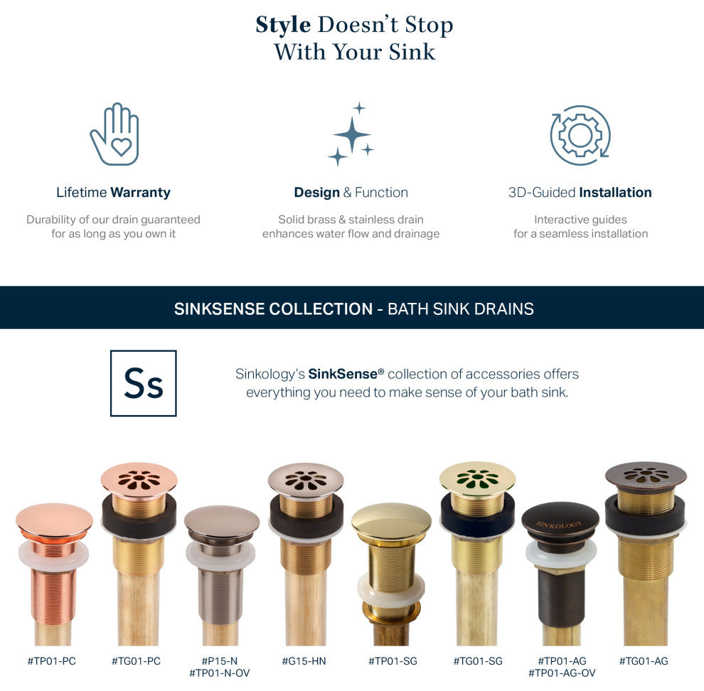 Finding the right drain size and style to match your sink can be a challenge. The SinkSense grid drain makes pairing the right sink simple - and is easy to install. Designed to fit our nickel sinks and match beautifully, this solid brass drain enhances water flow and drainage. Our lifetime warranty guarantees the durability of this drain for as long as you own it.Dimensions: 2.125" x 2.125" x 8"Fits 1.5"� standard-sized no-overflow sinksGrid-style design enhances water flow and drainageProtected by our lifetime warrantyNickel grid designed to match our nickel sink productsRecommended Products: SinkSense 1.5" Pop-Up Sink Drain in Nickel "“ No Overflow (#P15-N)