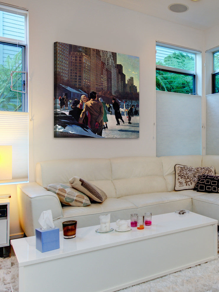 "Skaters in Central Park" Painting Print on Canvas by John Falter