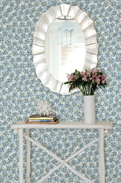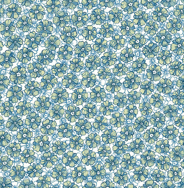 This wallcovering is packaged and sold in a double roll that is 20.5" wide x 33'' long. It has a straight match, with a design repeat every 20.9". It is unpasted, washable and strippable vinyl. This matte paper is a contemporary floral pattern, with hand-drawn flowers painted with watercolor tones. The background is white, with a teal and green floral pattern.