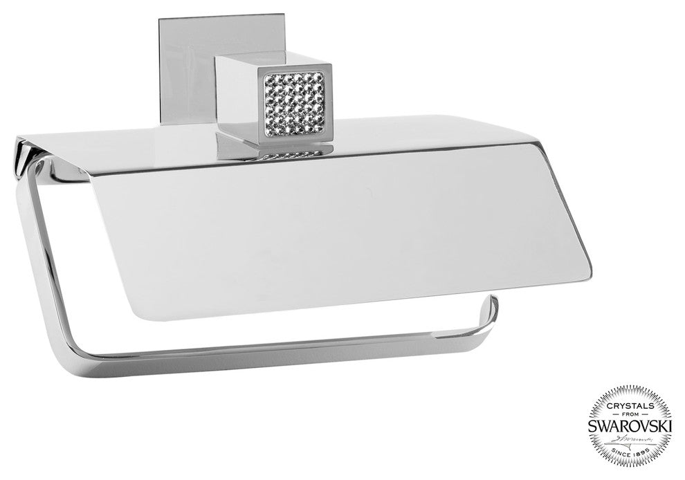 Skip Diamond Toilet Paper Holder With Lid, Swarovski Crystal, Chrome