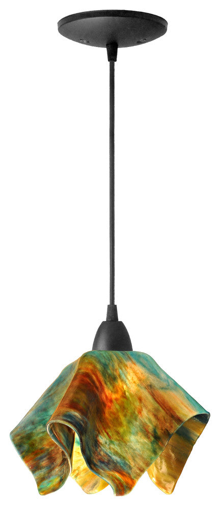 Jezebel Signature glass exudes romantic ambiance with color. Signature glasses have a rich waxy feel and stone-like texture and appearance. The Signature glasses are more luminous, richer in color and eliminate unsightly light bulb hot spots. Jezebel holds the patent on her technique. And, because the color is inside the glass and not painted on the surface, there is a remarkable 3-dimensional effect while light is diffused throughout the glass. The complex mixture of colors is difficult to attain in glass. Jezebel Signature glass surpasses any other for lighting, even that which Louis C. Tiffany made and became famous for from 1878-1938.Jezebel Signature Pendant Lights are made in the USA of handcrafted glass using a process patented to Jezebel. The remarkable three-dimensional effect can be ordered in a variety of glass colors. All Jezebel Signature products are UL certified and 120 Volts. This light can be used with a medium base bulb (not included): Incandescent, Fluorescent or LED. Naturally occurring air bubbles, inclusions, textures and slight color variations demonstrate that your Jezebel Signature Pendant Light is an original work of art. Your Jezebel Signature Pendant Light comes with our 90 day limited warranty. If your hardware or glass shade arrives defective in any way, please contact your retailer for claim instructions. Comes with 4.5 feet of adjustable cord, glass measurements are 5"H x 8.5"W x 8.5"D, the ceiling cap measurements are 1 5/8th" high, 5 1/8th" diameter.This light can be used with a medium base bulb (not included): Incandescent, Fluorescent or LED.The wiring is 120 volts.