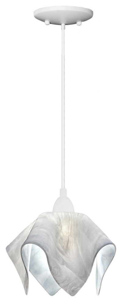 Jezebel Signature glass exudes romantic ambiance with color. Signature glasses have a rich waxy feel and stone-like texture and appearance. The Signature glasses are more luminous, richer in color and eliminate unsightly light bulb hot spots. Jezebel holds the patent on her technique. And, because the color is inside the glass and not painted on the surface, there is a remarkable 3-dimensional effect while light is diffused throughout the glass. The complex mixture of colors is difficult to attain in glass. Jezebel Signature glass surpasses any other for lighting, even that which Louis C. Tiffany made and became famous for from 1878-1938.Jezebel Signature Pendant Lights are made in the USA of handcrafted glass using a process patented to Jezebel. The remarkable three-dimensional effect can be ordered in a variety of glass colors. All Jezebel Signature products are UL certified and 120 Volts. This light can be used with a medium base bulb (not included): Incandescent, Fluorescent or LED. Naturally occurring air bubbles, inclusions, textures and slight color variations demonstrate that your Jezebel Signature Pendant Light is an original work of art. Your Jezebel Signature Pendant Light comes with our 90 day limited warranty. If your hardware or glass shade arrives defective in any way, please contact your retailer for claim instructions. Comes with 4.5 feet of adjustable cord, glass measurements are 5"H x 8.5"W x 8.5"D, the ceiling cap measurements are 1 5/8th" high, 5 1/8th" diameter.This light can be used with a medium base bulb (not included): Incandescent, Fluorescent or LED.The wiring is 120 volts.