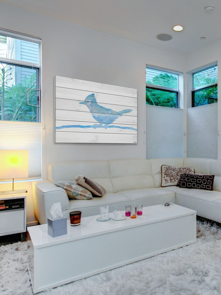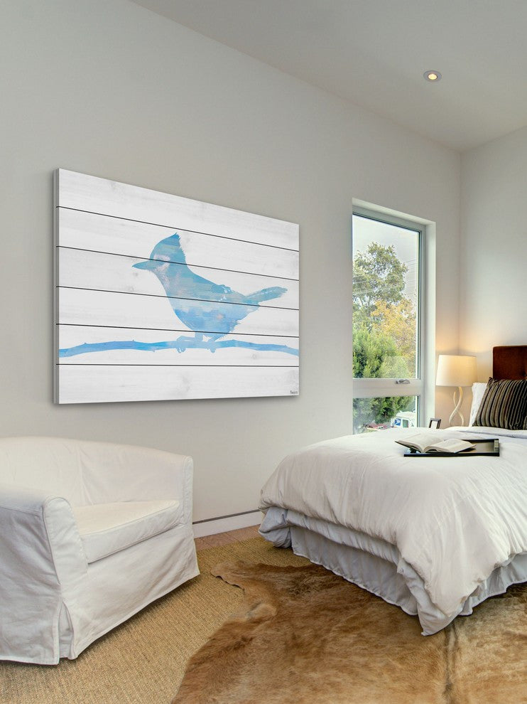 Striking and unique, the "Snow Jay" Print on White Wood by Parvez Taj will bring your walls to life. Printed on white wood, this 36 inch wide by 24 inch tall contemporary artwork will make a statement in any living room, dining room, or bedroom.- Fine art UV ink print on white wood by Parvez Taj- wood pieces are hand-selected by Fine craftsmen for printing- Arrives ready to hang- Includes a certificate of authenticity- Artist signature on the front