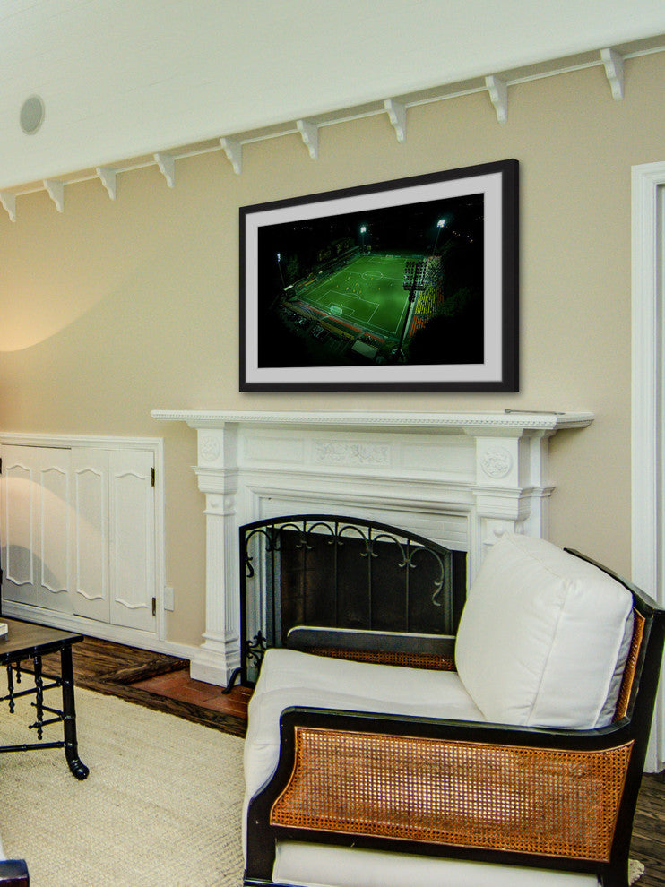 "Soccer Field" Framed Print by Karolis Janulis features vivid tones and supple artistry. Mounted in a gorgeous frame, this 45 inch wide by 30 inch tall piece will be an exceptional addition to any room. Top quality Giclee print on high resolution Archive Paper Artwork by Karolis Janulis Professionally framed and mounted on acid free archive matte High quality durable non-warping frame Arrives ready to hang Includes a certificate of authenticity Made in the USA