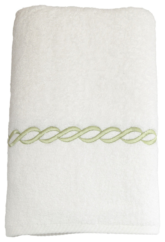 Soft Twist Cadena Bath Towel, White & Light Green, 27"x54"