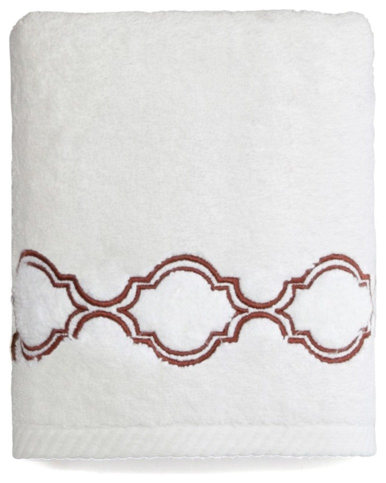 The Soft Twist Trellis Collection is our most luxurious yet, manufactured with more cotton per square inch to maximize both softness and absorbency. Timeless chain design embroidered in brown color on the finest 100 % Turkish cotton. These long-lasting towels are made with a thick twist and double stitched edge, and they become softer and softer with each wash.1 Hand Towel (16" x 30"). 100% Genuine Turkish Cotton Natural dobby weave border Machine washable Extra thick weave, 700+ GSM Made in Turkey Machine wash with-warm water, Tumble Dry Low, Remove immediately, No bleach