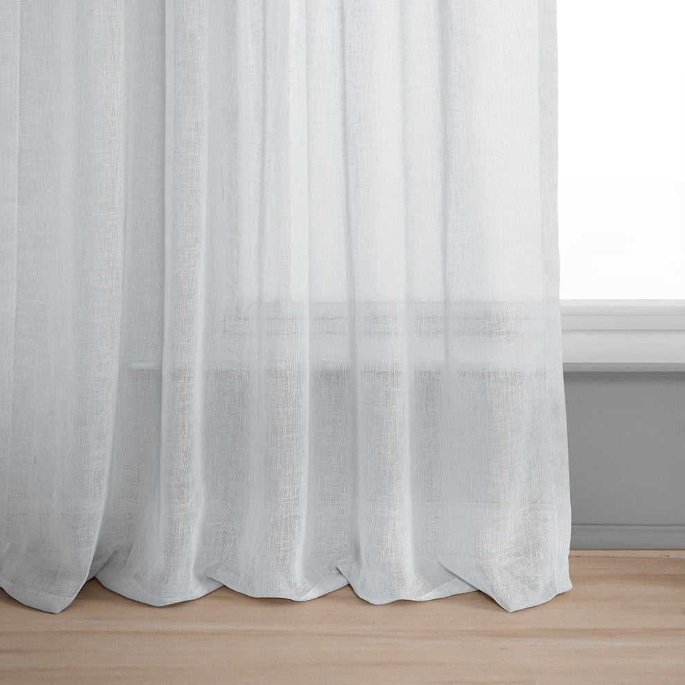 Solid FauxLinen Sheer Curtain, Single Panel, Aspen White, 50"x84"