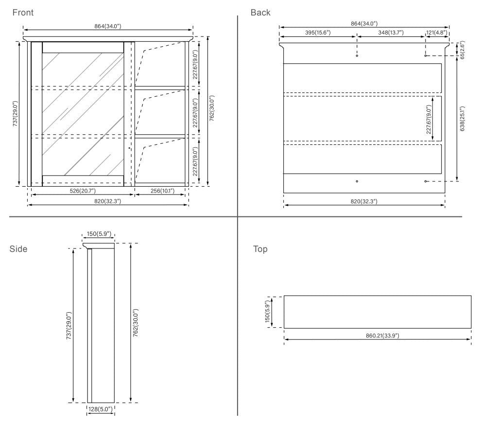 6. Mirror Dimension: 34W• 5.9D• 30H inches