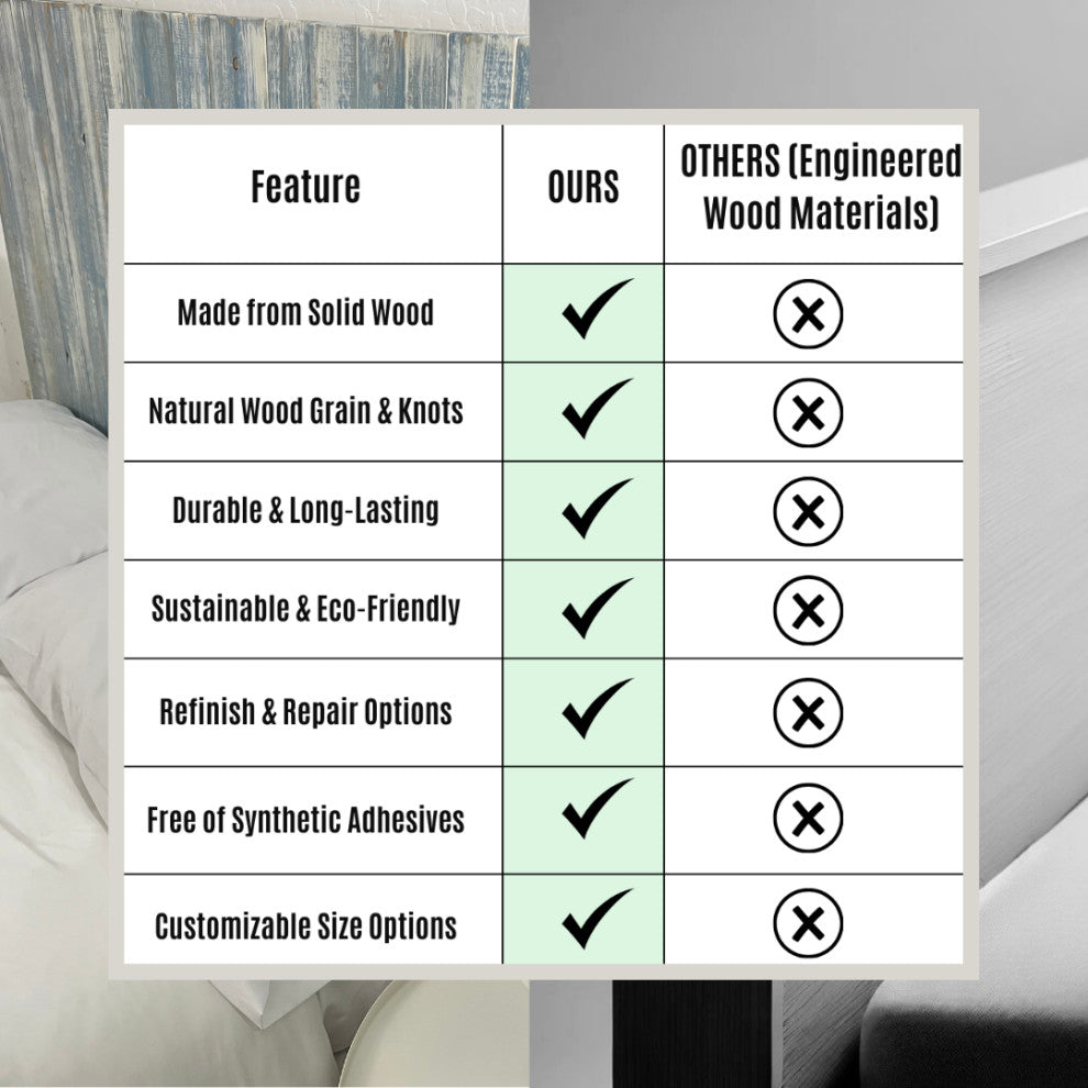 Solid Wood Headboard Modern Farmhouse with Smooth Natural Wood Grain for Any Bed, Blue Powderwash, Queen
