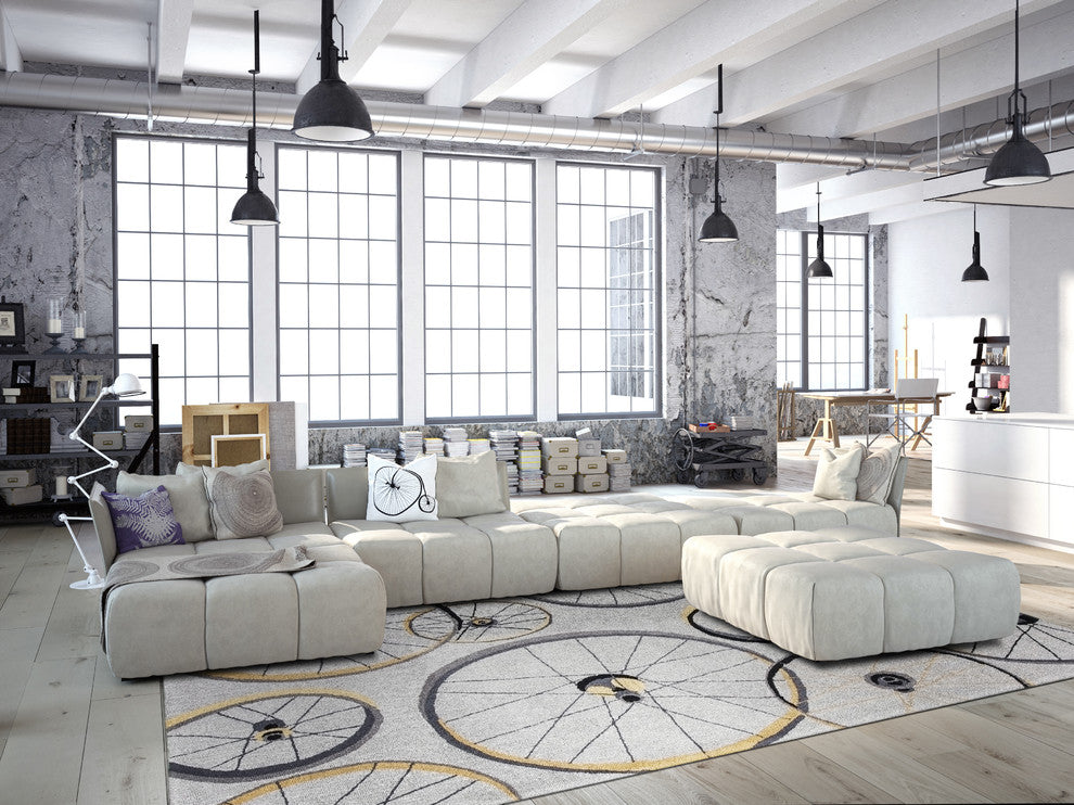Sonesta 2035 Gray Wheels In Motion Rug, 7'6" Round