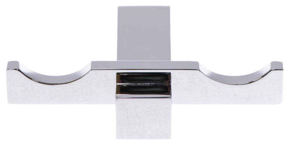 Enhance the look of your bathroom with the help of the Italia Collection. Featuring a distinct European flair, our high quality Polished Chrome. finish will add the perfect touch to any bathroom. The Sorrento Series double robe hook provides a sleek contemporary look that enhances any bathroom. The Sorrento Series has a unique pin mounting system that makes for easy installation.