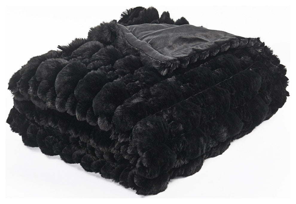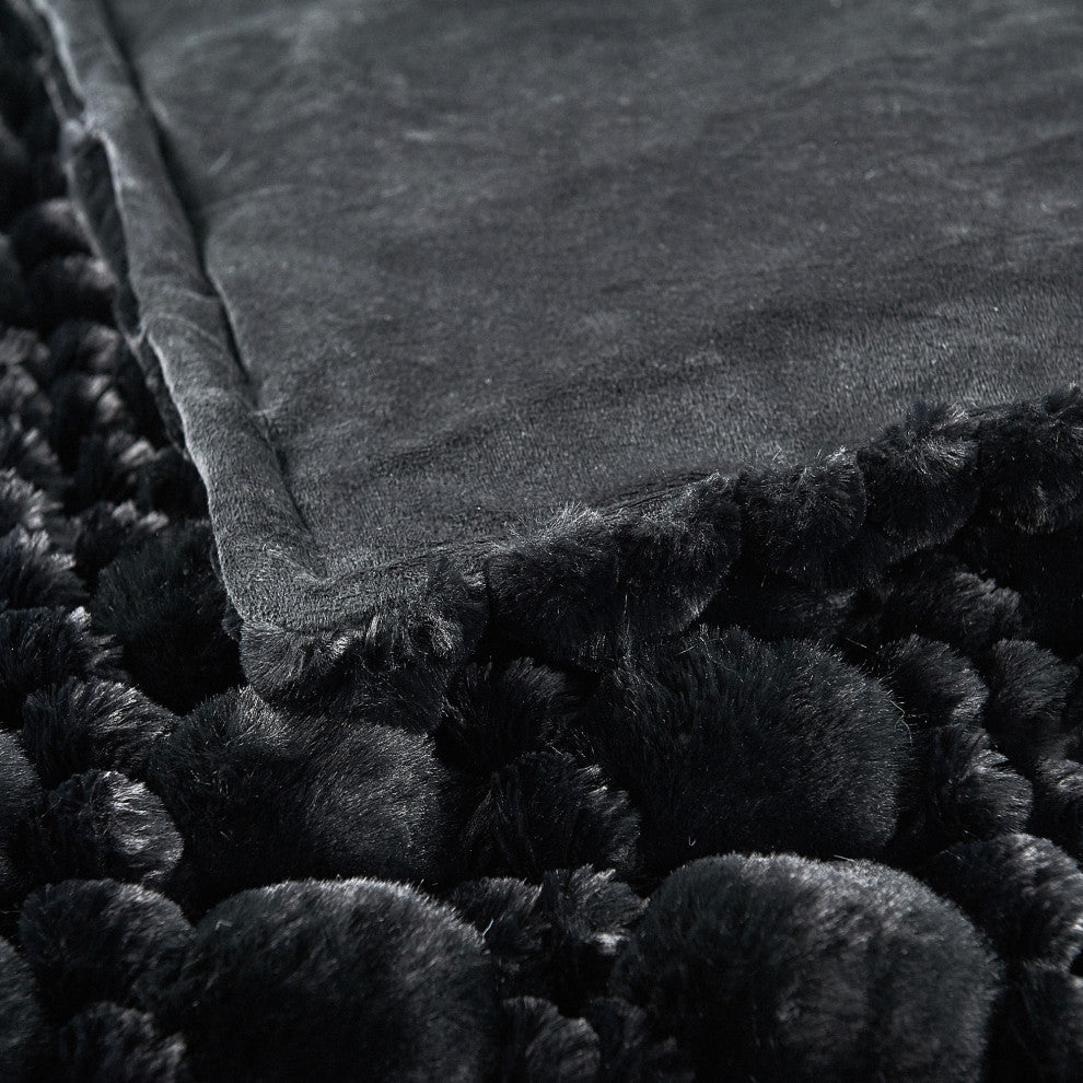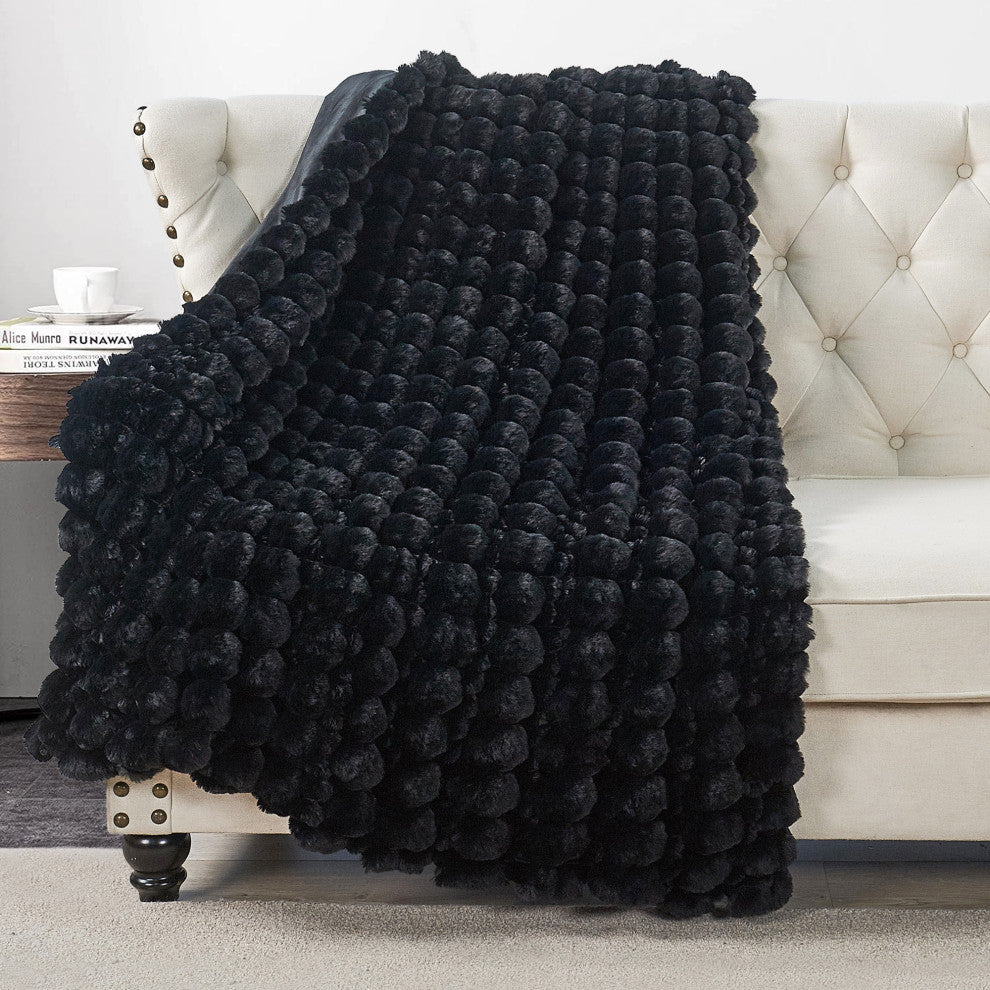 Spandex Bubble Faux Fur Throw Blanket, Black