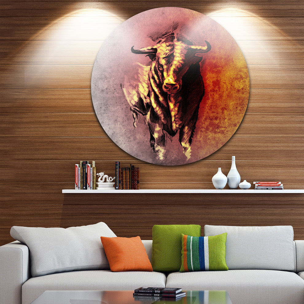 Bring Contemporary Abstraction to your home with this large Circle Metal wall art. This Spanish Bull Tattoo Sketch Metal Artwork makes it the focal point of any room or office.
