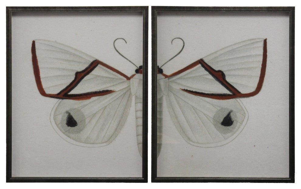 Split White And Red Butterfly, Pewter Shadowbox, Left, Right