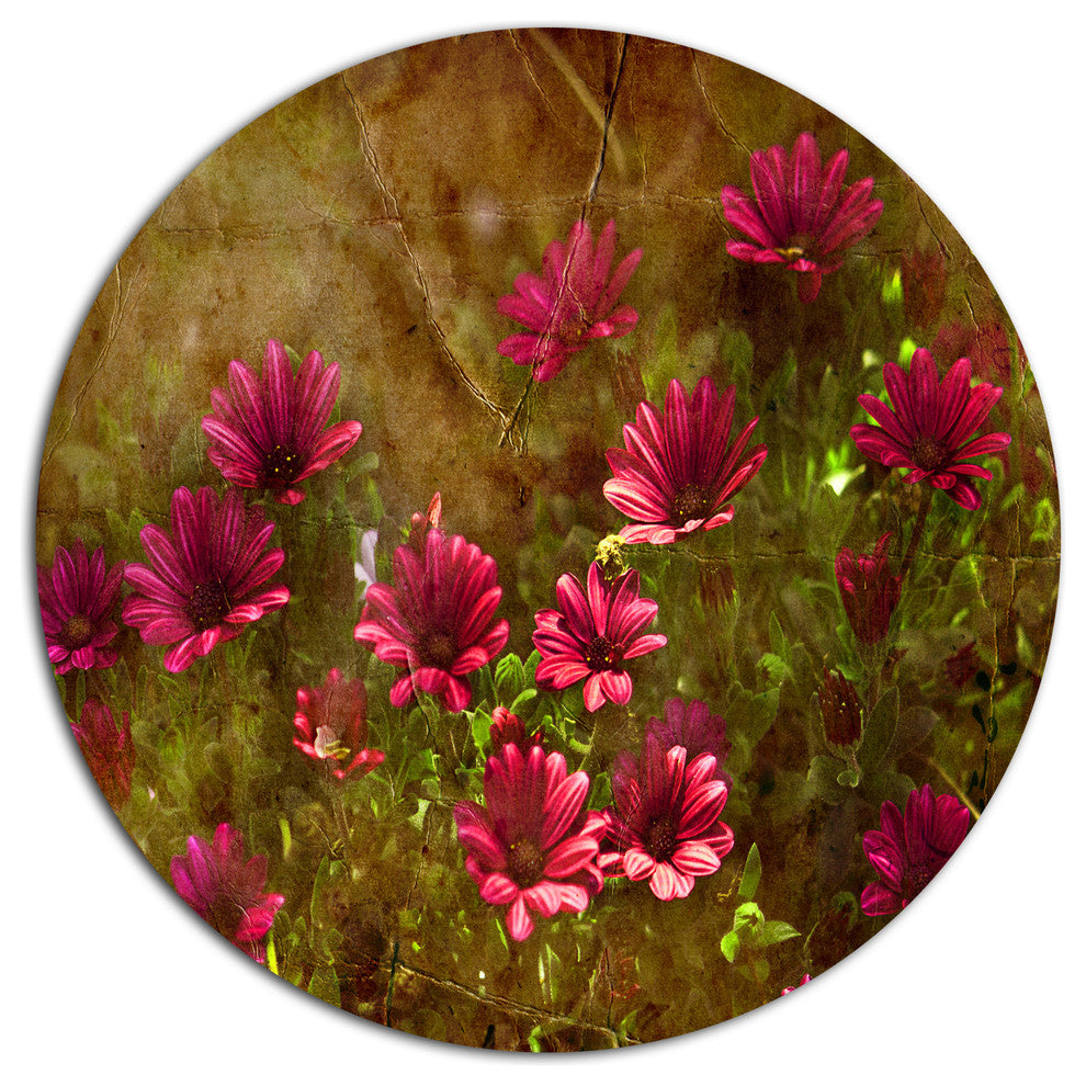 Spring Garden With Little Red Flowers, Floral Disc Metal Wall Art, 11"