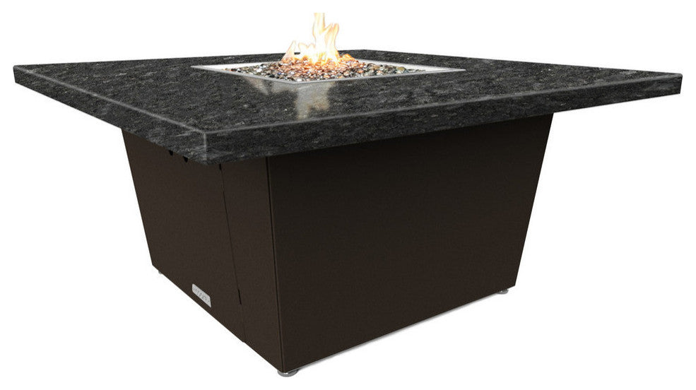 Square Fire Pit Table, 44x44, Chat Height, Propane, Black Pearl Granite Top, Bronze