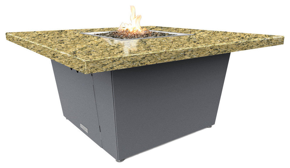 Square Fire Pit Table, 44x44, Chat Height, Propane, Santa Cecilli Top, Gray