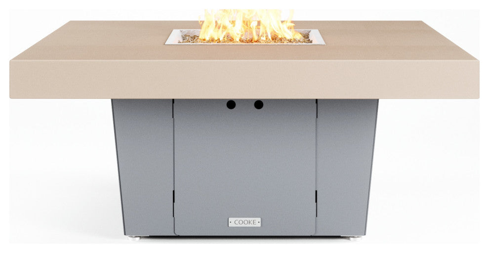 Square Fire Pit Table, 48x48, Chat Height, Natural Gas, Beige Powdercoat Top, Gray